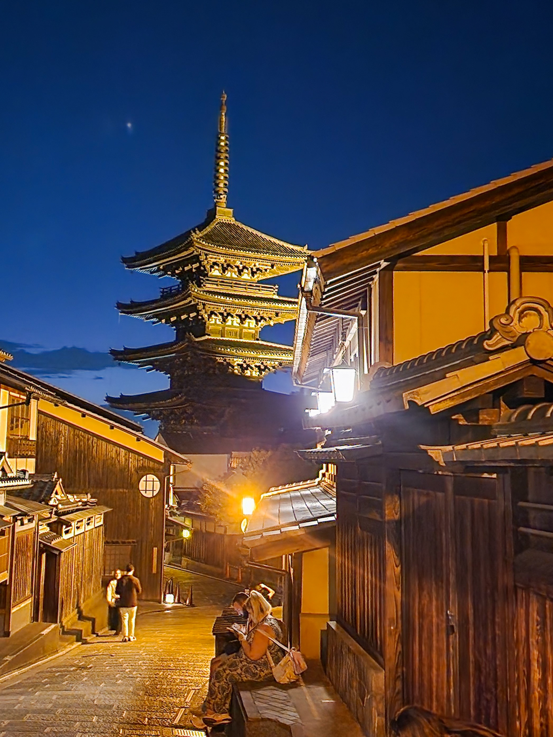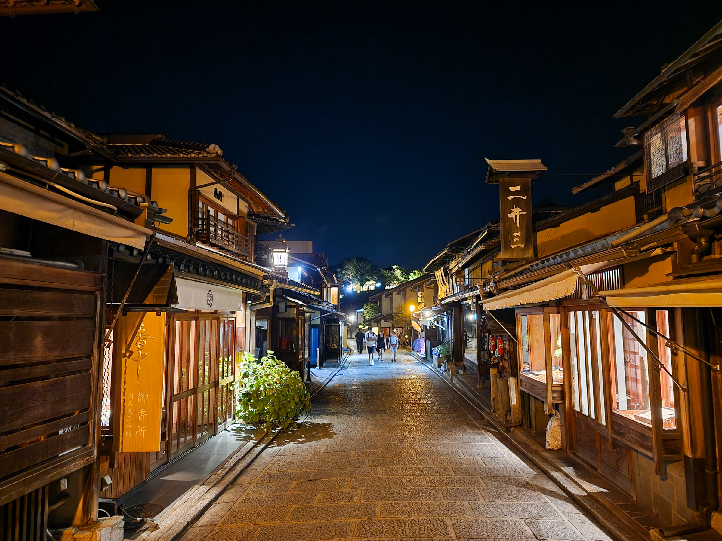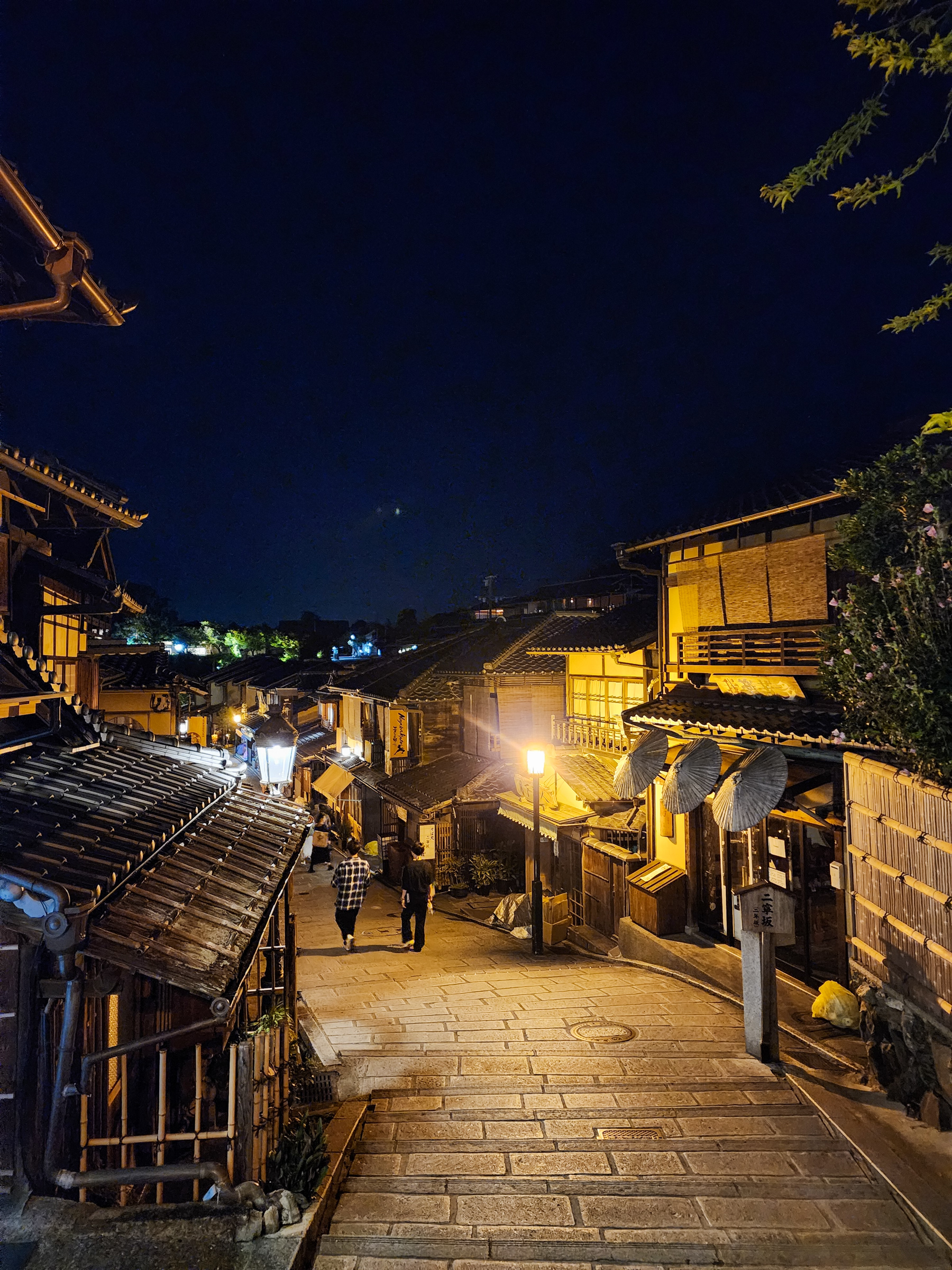 맛있는 밥을 배불리 먹고 나와 바로 옆 니넨자카로 내려간다. 낮엔 관광객들이 빼곡하게 들어차 너도나도 사진을 찍는 계단은 텅 비어 있다. 나처럼 밤 분위기를 즐기기 위한 관광객이 몇몇 산재하고 있지만, 아무래도 낮과는 인구밀도가 달라도 너무 다르다. 니넨자카가 이렇게 분위기 있는 길이었나 싶을 만큼 한산하고도 호젓한 돌길과 전통 가옥들이 과거로 타임 슬립이라도 한 듯한 분위기를 자아낸다.