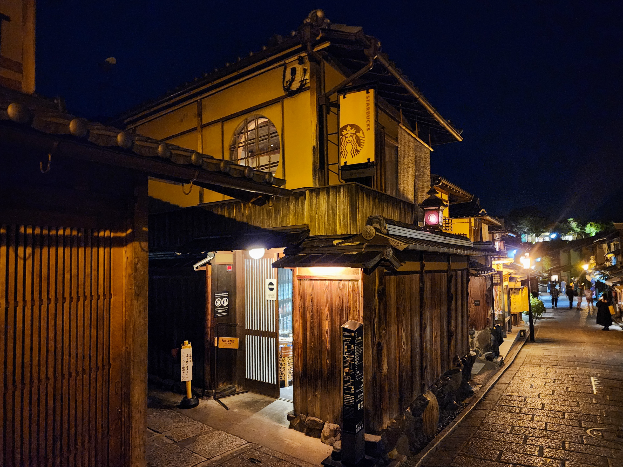 알록달록한 도심과는 다른, 색이 하나만 존재하는 듯 온통 노란 가로등 불빛으로만 물든 좁은 골목길 초입엔 지금이 21세기라는 것을 절감하게 하는 스타벅스가 한자리를 차지하고 서 있다. 대부분의 카페나 찻집이 6시면 문을 닫는 니넨자카에서 그나마 8시까지 커피를 즐길 수 있게 해주는 고마운 존재다.