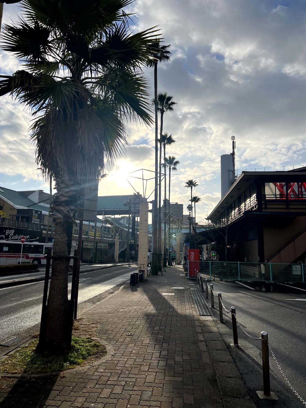 아침 햇살을 받으며 하카타항으로 가는 길