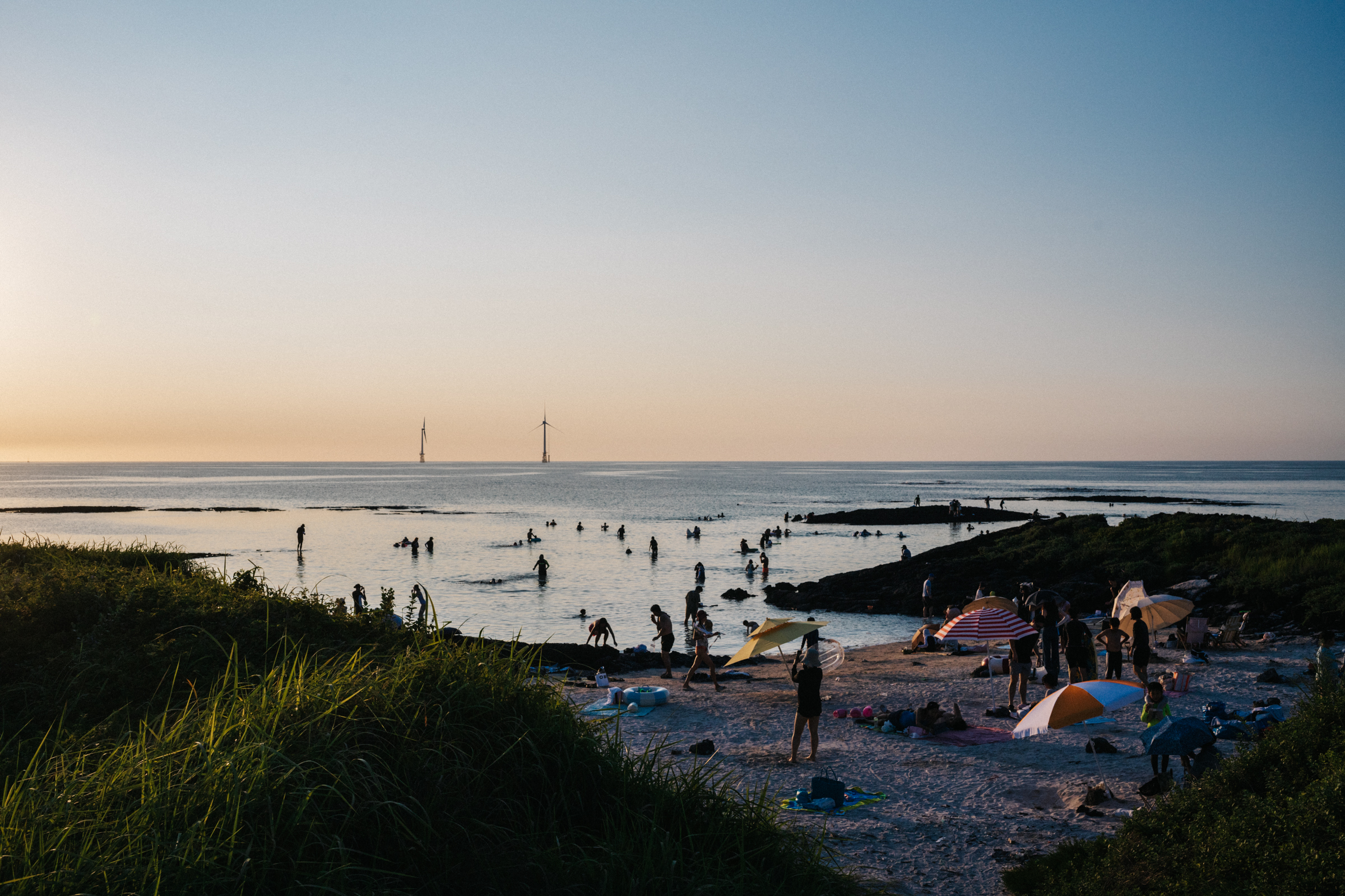 코난해변에서는 세속을 뒤로하고 오로지 태양과 바다만 즐기기로 작정한 사람들을 보았다. 태국에서 직접 들여온 옷과 숄을 파는 잡화 트럭을 지나 야트막한 언덕을 내려가면 갑자기 작은 만 하나가 모습을 드러낸다. 파라솔과 비치 타월이 좁은 모래톱을 나눠 쓰고, 트렁크부터 원피스, 비키니, 래시가드까지 취향 따라 입은 수영복은 단 한 점의 과시욕도 없이, 서로 의식함도 없이 바닷물에 젖어 든다. 머리 위로는 거대한 풍차가 모두의 시선을 하늘로, 먼바다로 띄워 보낸다. 내게 남아 있던 망설임도 그 바람에 실려 날아가 버렸다.