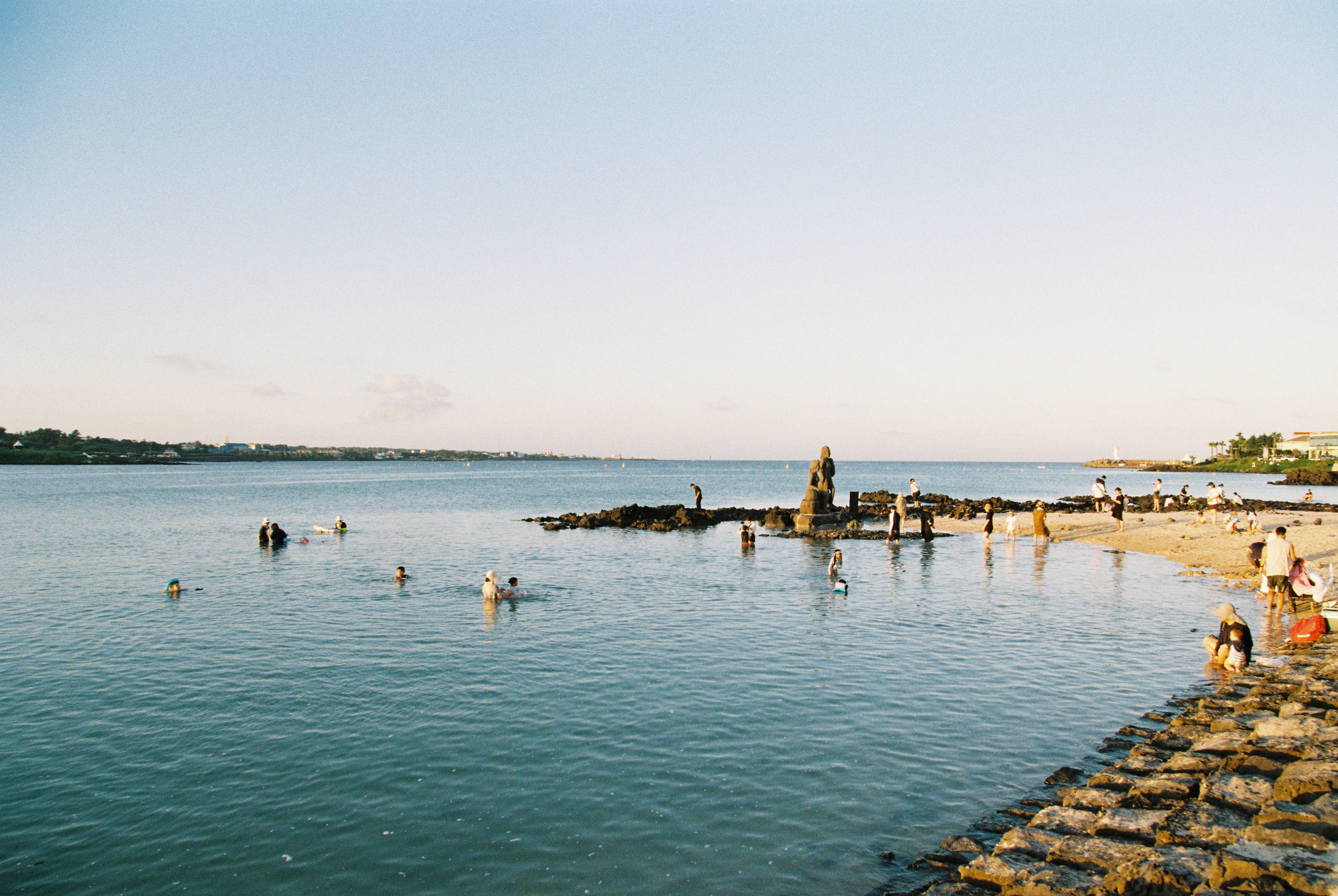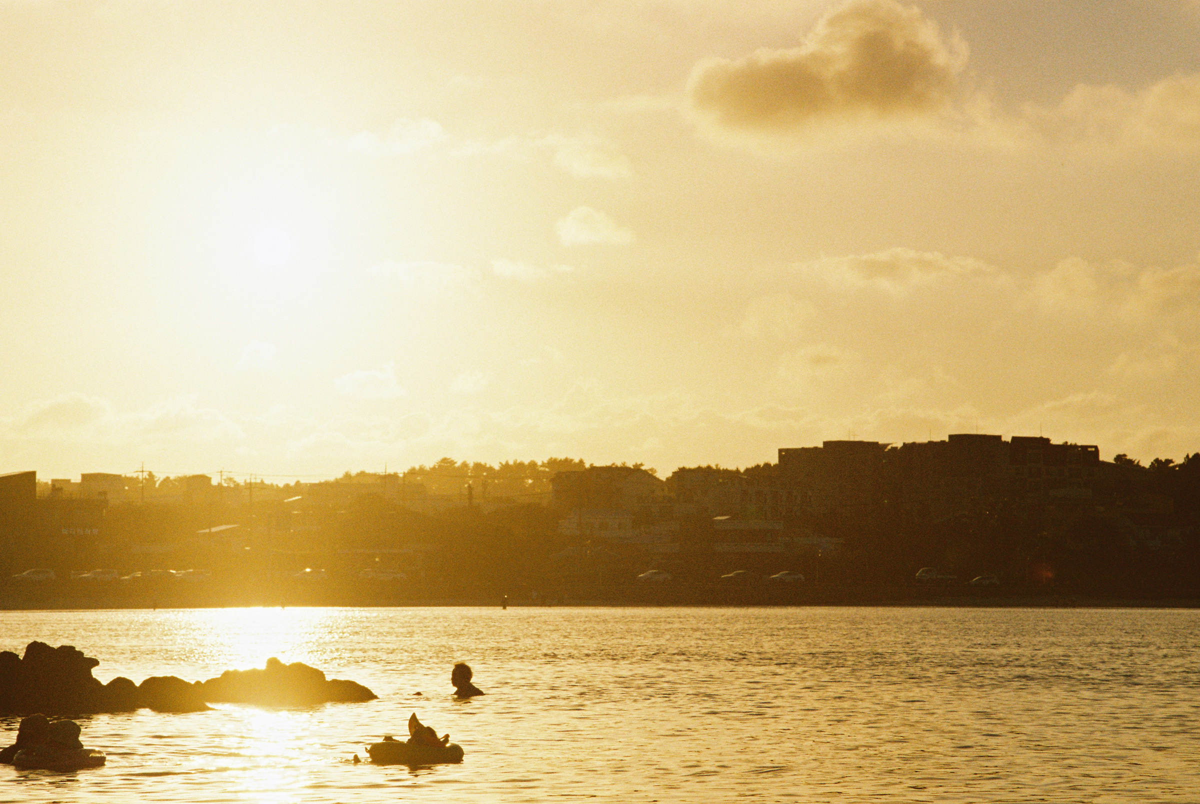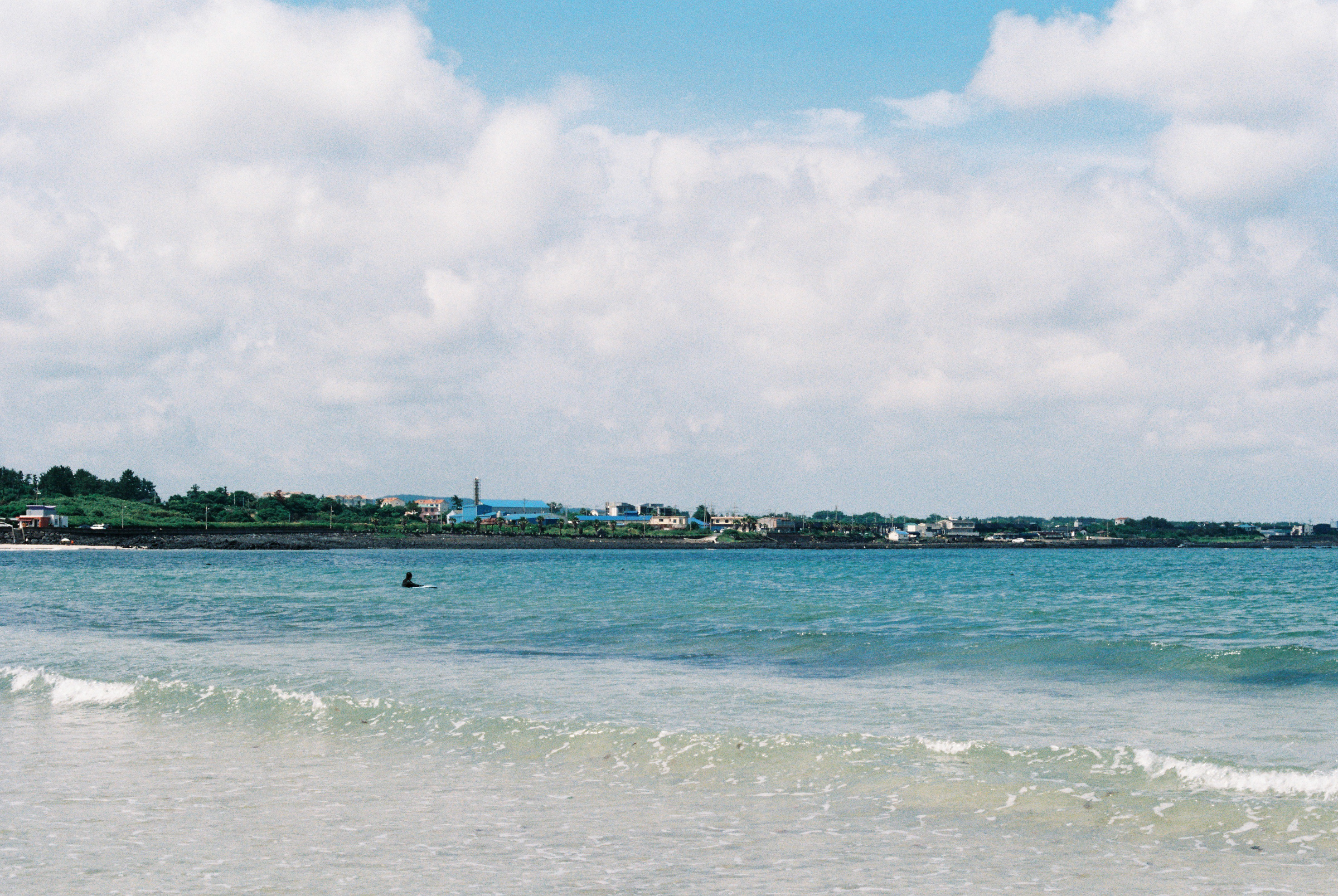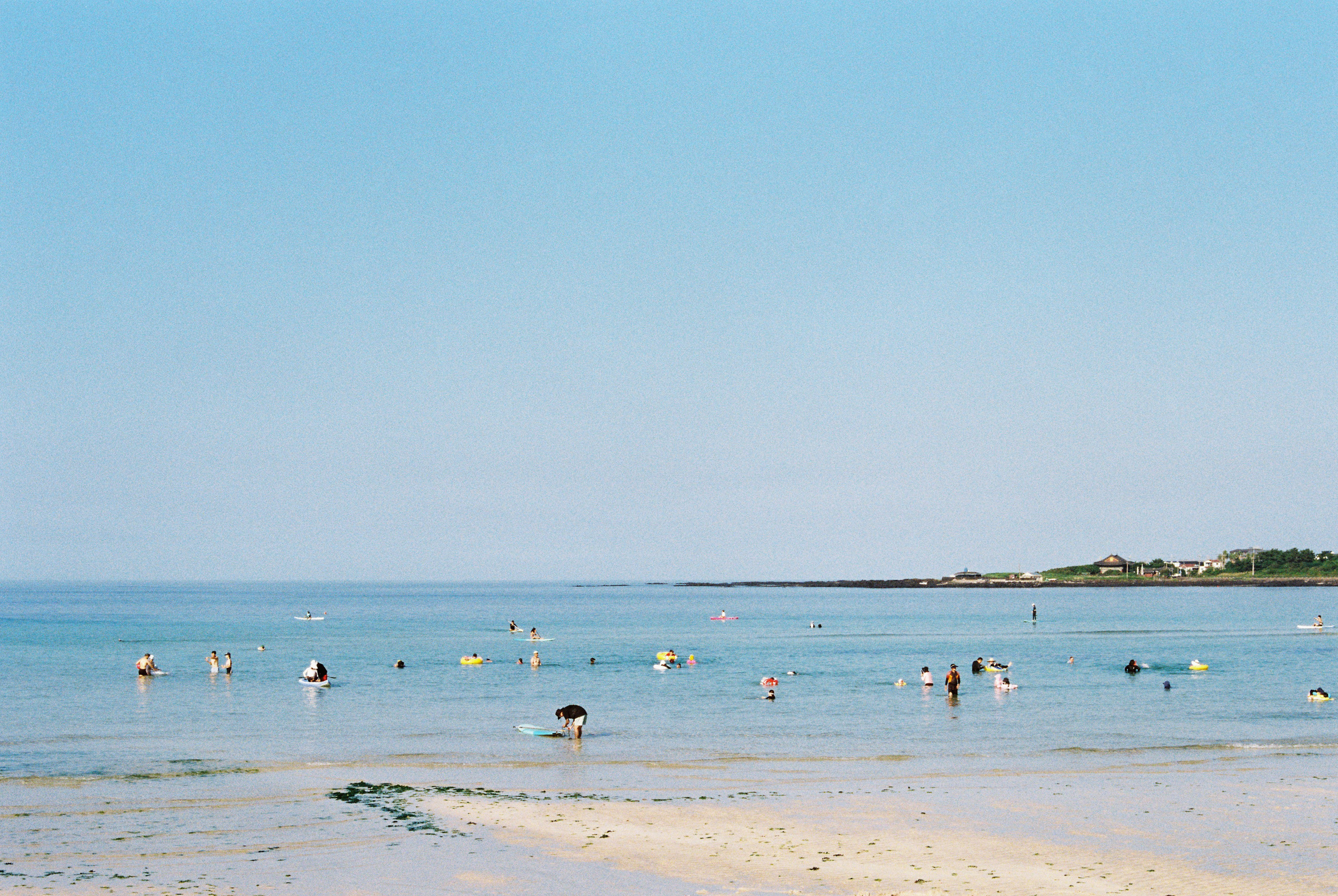 며칠을 얕은 바닷속에서 보내고 나자 슬슬 물놀이 느낌을 내고 싶었다. 주말마다 잘 알려진 해변을 다녔다. 함덕부터 세화까지, 관광지와는 거리가 먼 동네에서 살다가 북쪽 유명 해변으로 올라오자 훌쩍 문명 세계(?)의 바다로 던져진 기분이었다.