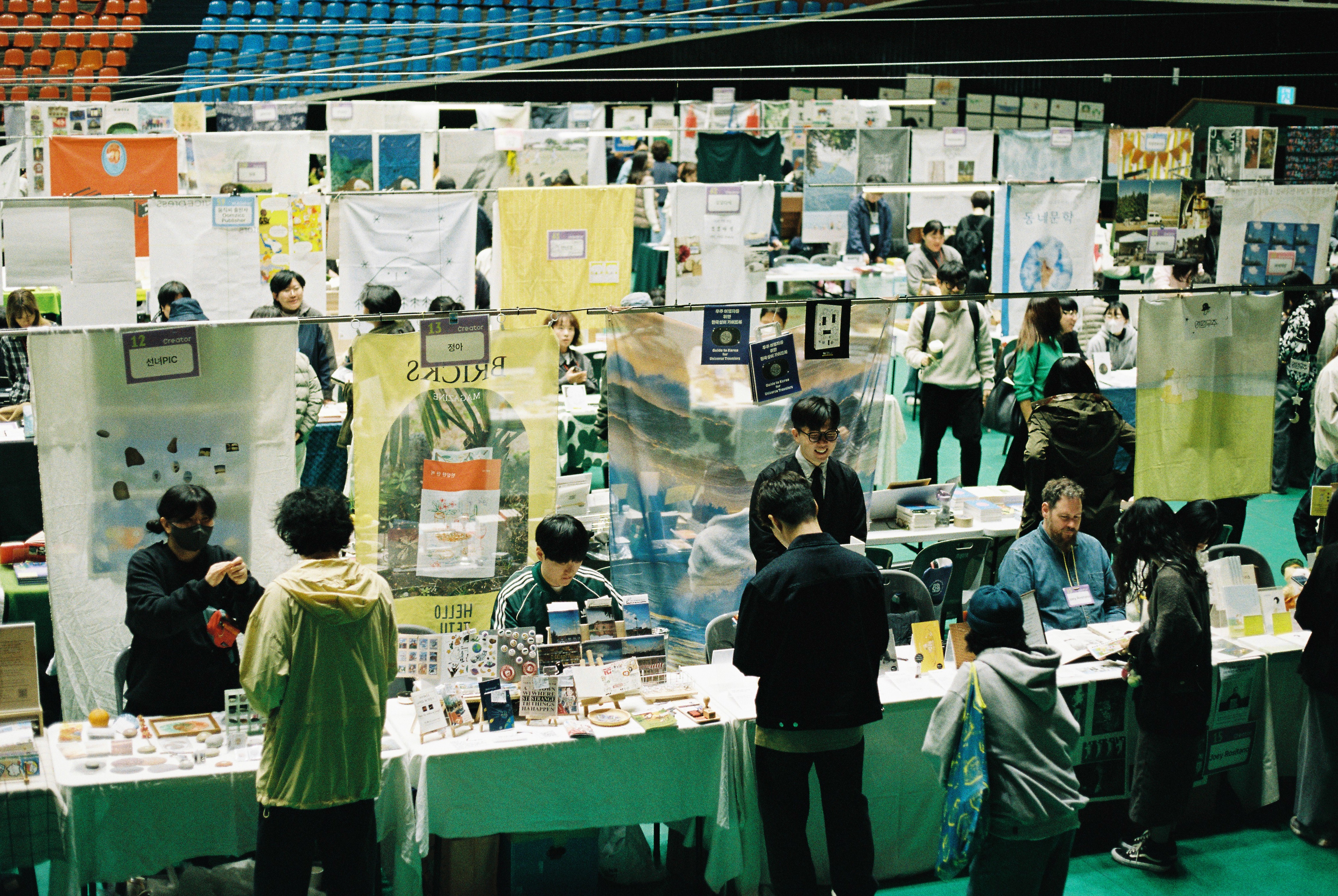 제주북페어는 창작자들, 책방지기들, A부터 Z까지 홀로 도맡아 하는 독립출판사 운영자들이 전국에서 모여드는 책 행사다. 체육관에서 개최하니까 별칭도 ‘책 운동회’, 귀엽다. 부스를 꾸미고 삼각김밥을 두 개나 먹었는데도 시간이 남았다. 셀러들은 행사가 시작하기 전에 먼저 다른 부스를 돌아다니며 책을 업으로 삼은 동병상련한 동료들과 인사를 나눈다. 직접 작품을 만들거나 다른 사람의 작품을 다루기 위해서는 자기 홍보가 필수인 요즘, 운동장 바닥에 고양감과 머뭇거림이 뒤섞여 찰방거렸다. 나는 여기서도 엉덩이가 무거워지고 말았지만, 누군가에게 우리가 낸 책이 어떤 책인지 줄줄이 읊어 주고 싶은 충동을 못 이기기도 했다.