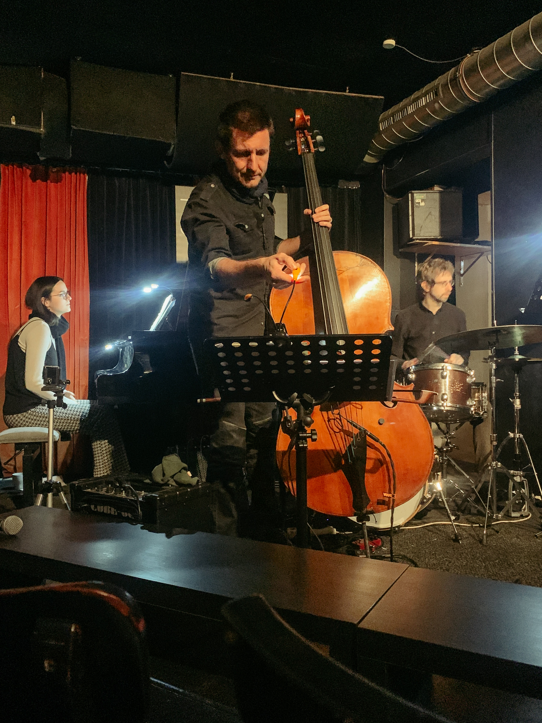 오늘의 공연은 ‘Kristian Lind’라는 베이스 연주자의 트리오 공연이었다. 피아노와 드럼에 앉은 연주자는 젊어 보였고, 베이스 연주자는 시니어 급의 연주자로 보였다. 주로 베이스 연주자의 창작곡 위주로 진행됐는데, 중간 중간 곡 설명을 해 주었다. 젊은 여성 재즈 피아니스트는 정통 스윙이라기보다는 브래드 멜다우 느낌의 지적인 솔로 연주를 들려주었고, 드럼 연주자 또한 각각의 솔로에 잘 반응하여 다이내믹을 만들어주었다. 세 사람의 인터플레이가 듣기 좋았다.
