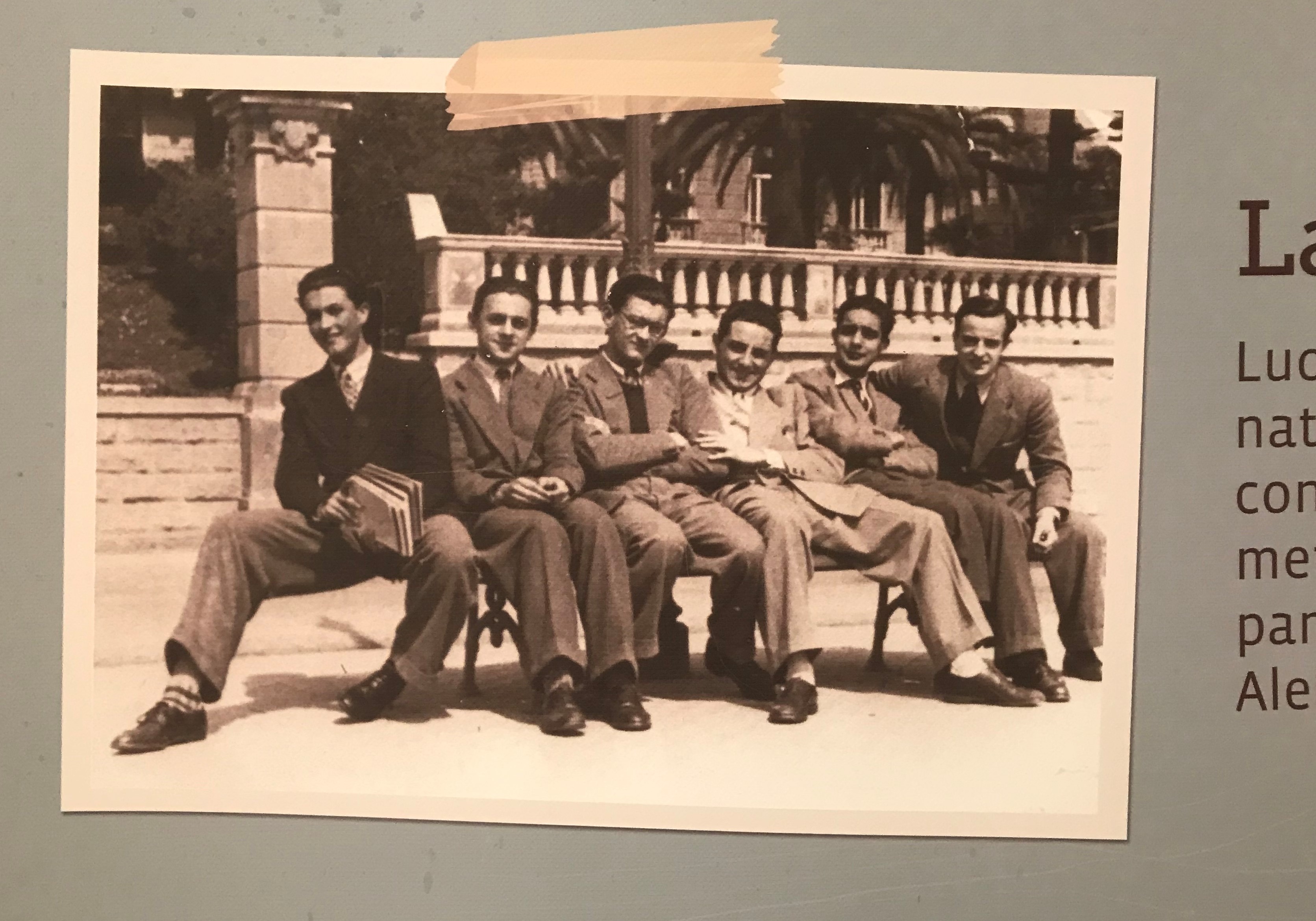 산레모 시립도서관 입구에 있는 고등학교 시절의 칼비노 사진. 오른쪽에서 두 번째.