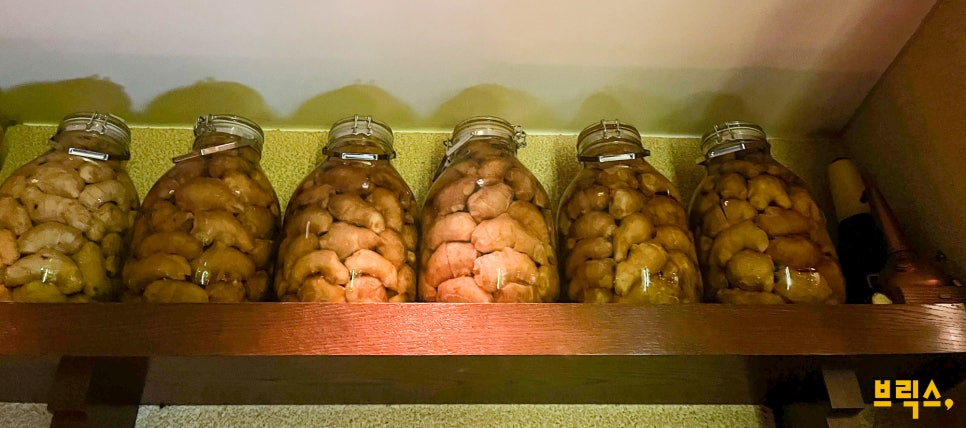 이곳은 1970년~1990년의 올드 보틀을 많이 갖추고 있어서 위스키 모험가들의 호기심을 채워주기 충분한 곳이다. 상가 건물 안에 있는 작은 가게인 히구치에 들어가면 선반에 빼곡히 채운 병에 시선을 빼앗기는데 이는 직접 만든 생강 시럽이다. 히구치 바는 수제 생강 시럽과 직접 선별한 보드카로 만든 모스코뮬이 시그니처이기도 하다. 모스코뮬은 톡 쏘는 생강 맛보다는 뭉근하게 오래 절인 생강 맛이 나는 자극적이지 않은 스타일로 평소 먹어온 모스코뮬과는 상당히 달랐다.