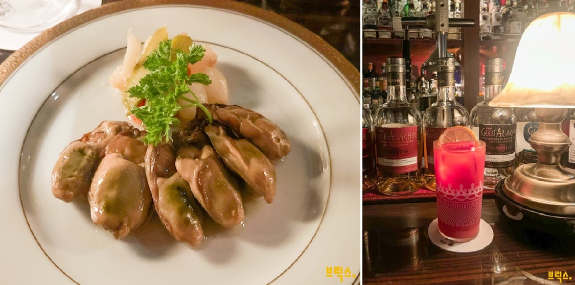 안주로 먹은 훈제 굴과 후지 바의 칵테일