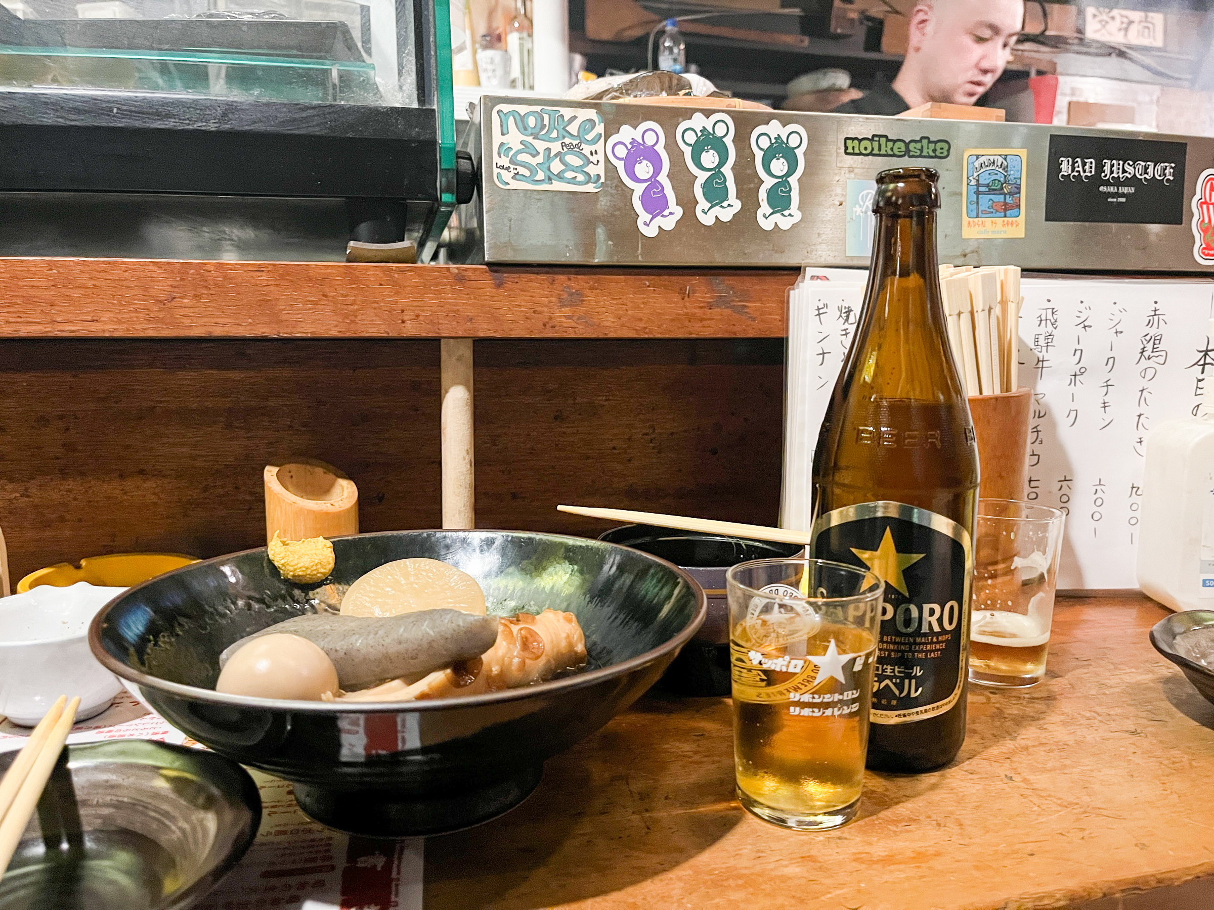 로바다야키답게 숯불구이가 메인인 만큼 야끼토리도 꼭 먹어봐야 한다. 눈앞에서 숯불로 바로바로 구워주는 야끼토리는 신선한 생맥주와 기가 막히게 조화롭다. 하루의 피로가 절로 가시는 맛이다. 동네 주민들이 조용히 한두 잔 하는 사랑방 같은 가게이고 자리도 협소한 만큼 여러 명이 우르르 가기보다는 두세 명이 오붓하게 즐기는 것을 추천. 쇼와 시대의 술집을 경험하고 싶다면 꼭 한 번 방문해 보자.