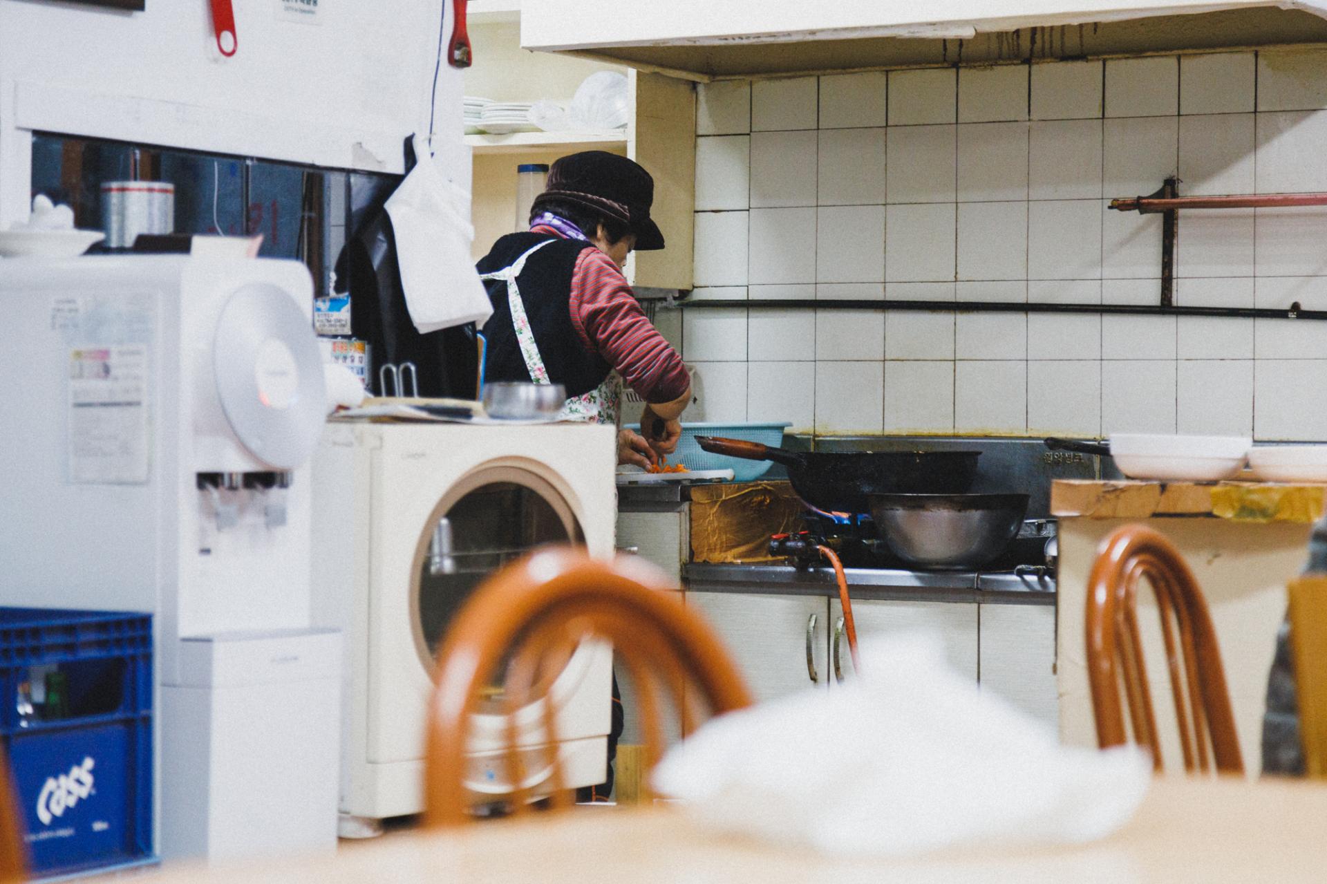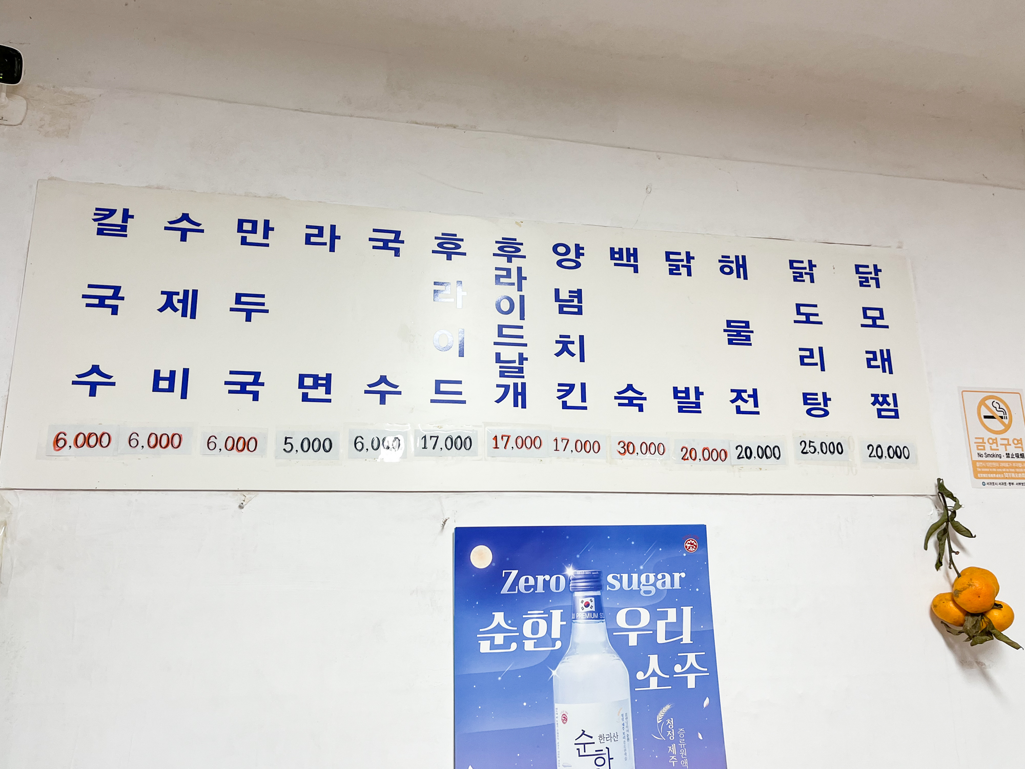 크고 작은 식당들이 오밀조밀하게 모인 성산읍 골목 어딘가. 한 집에서 양념치킨과 멸치국수를 함께 판다는 조합이 어떻게 가능할까 궁금증을 안고 문을 열면 세월 흔적 가득한 식당이 나타납니다. 생활공간이 분명한 방도 하나 딸려 있네요. 벌써 동네 사람 두 팀이 식사를 마무리하고 일어설 채비를 하고 있거요.