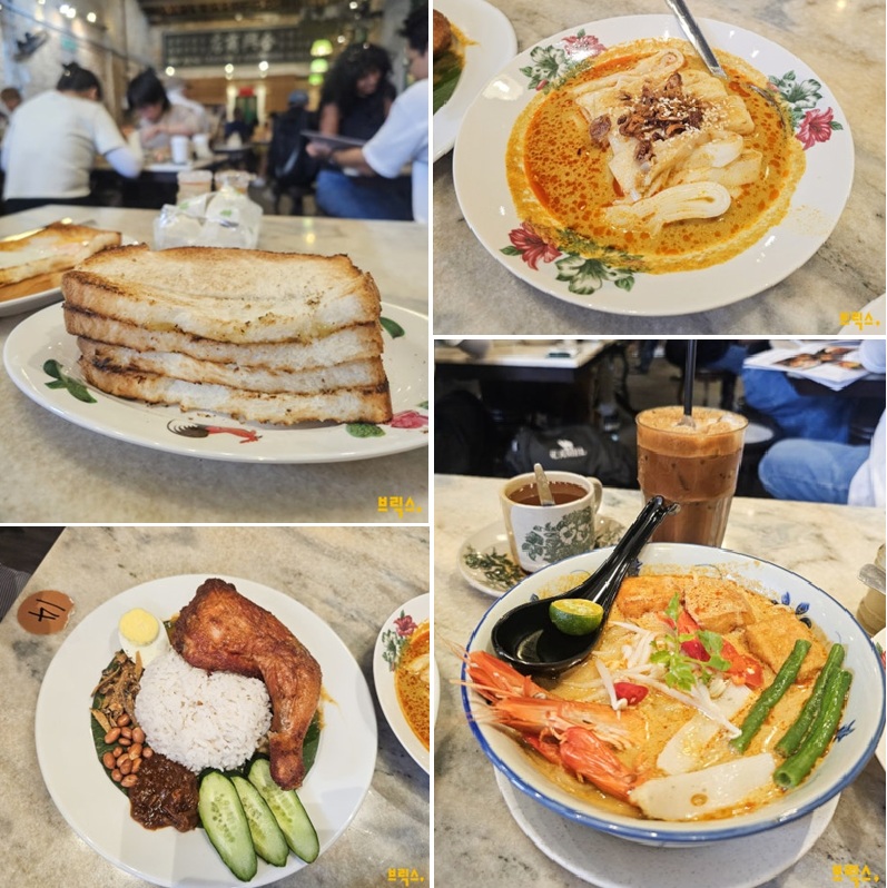 주말 아침이면 대기표를 받고 기다렸다 입장하는 것이 보통이다. 2층 자리에 앉으면 벽돌로 된 벽과 갈색 천장이 옛날 시골 할머니 집에 온 것 같은 정감을 준다. 말레이시아식 레트로를 즐기고 SNS에 그 감성을 공유하는 젊은 세대도 많이 찾는다. 카야토스트는 기본이고, 커리 락사, 치청펀, 나시르막 같은 말레이시아 전통 음식도 도전해 보자. 커피, 밀크티 모두 마시고 싶을 때, 둘을 섞은 음료 참(Cham)도 별미다. 커피는 우유 종류, 설탕 유무에 따라 코피, 코피-씨, 코피-오로 나뉘어 있어 취향 따라 고를 수 있고, 화이트커피보다 진한 원두의 맛을 느낄 수 있다.
