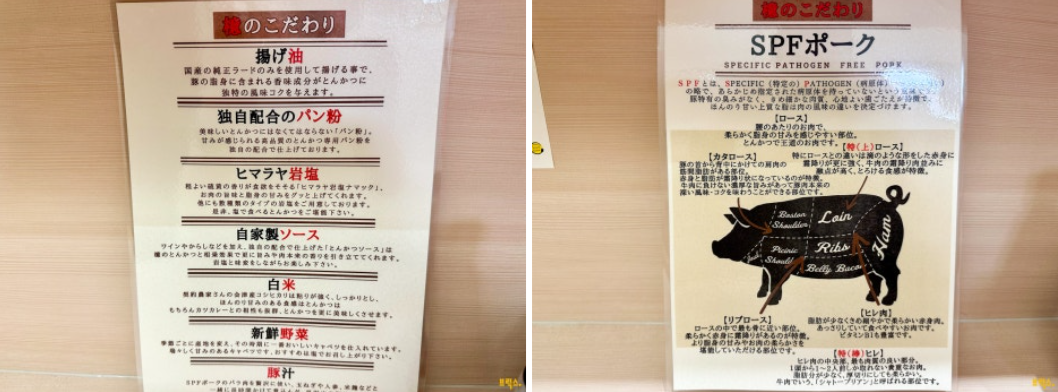 일본에서는 몇 년 전부터 ‘브랜드 돼지고기’로 만든 돈카츠가 유행하고 있어요. ‘브랜드 돼지고기’를 한마디로 정리하기엔 어렵지만, 일반적으로는 사육 단계부터 잘 관리하고 좋은 먹이를 주고 정성껏 키운 고급스러운 돼지고기를 말하며, 400종 정도 있다고 해요. 아무래도 유통되는 양에 한계가 있기 때문에 가격은 상당히 비싸지만 육질은 정말 좋습니다. ‘하야시SPF'는 일본 브랜드 돼지고기 중 특히 인기와 지명도가 높은 품종입니다.
