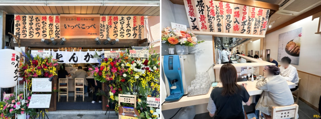 처음으로 소개할 토핑 카페 맛집은 ‘잇뻬콧뻬(いっぺこっぺ)’입니다. 잇뻬콧뻬는 원래 도쿄에서 유명한 돈카츠 맛집 ‘아오키(とんかつ檍)’라는 곳에서 운영하는 '카츠카레 전문점'이랍니다. 아오키의 돈카츠는 고기를 고온으로 단시간에 튀겨 육질이 부드럽고 식감이 좋기로 이름이 났는데, 바로 그 돈카츠가 토핑으로 나오는 것이지요. 바탕이 좋은 만큼 카츠카레의 인기도 높아 잇뻬콧뻬는 최근 점포 수도 늘리고 있습니다. 이번엔 그중에서도 몬젠나카초점을 소개합니다.