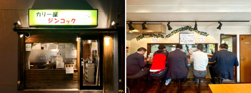 이번 토핑 카레 기사에서 꼭 소개하고 싶다고 생각했던 가게가 ‘진콧쿠(ジンコック)’입니다. 도쿄 카레 격전지인 간다(神田)에 위치하는 카레 전문점이고, ‘카니크림 고로케(カニクリームコロッケ)’가 맛있는 가게로 알려져 있습니다. 이곳에서는 '카레', 혹은 '커리'라고 부르지 않고 '카리'라고 표현하고 있고 메뉴에도 그렇게 표기하고 있어요.