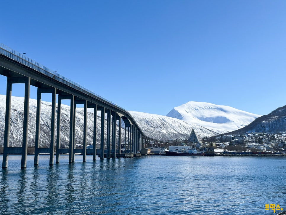 관문에서는 Tromsø의 상징적인 풍경 중 하나인 Tromsø 대교(Tromsøbrua)도 볼 수 있어요. 이 다리는 Tromsøya 섬과 본토의 Tromsdalen 지역을 연결합니다. Tromsø 공항과 시내 중심가는 모두 Tromsøya 섬에 있어요. 걸어서도 다리를 건너갈 수 있고, 겨울철에는 특히 오로라를 관찰하기 좋은 스팟으로도 알려져 있어요.