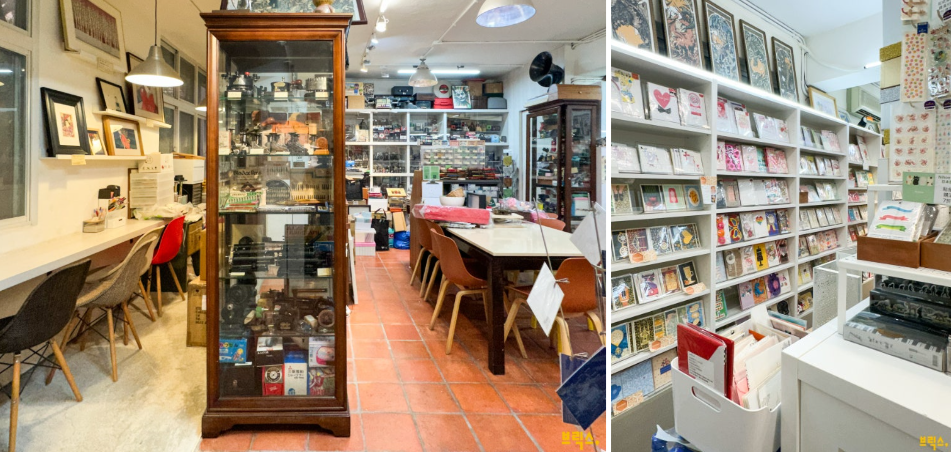 매장 안은 테마별로 정성스럽게 분류된 4,000여 종의 축하 카드와 엽서가 한가득이라 어디서부터 구경을 시작해야 할지 고민이 될 정도다. 방대한 양의 엽서를 동식물, 화가, 캐릭터 등 주제별로 서랍에 정리해 놓았는데, 서랍마다 꼼꼼히 붙여 놓은 라벨링을 보면 주인이 얼마나 이 공간에 애정을 쏟았는지 단번에 느낄 수 있다. 엽서만 있는 건 아니다. 주인의 수집욕은 펜, 잉크, 지우개 등 그 분야를 넘나든다. 매장을 구경하다 보면 100대가 넘는 연필깎이 컬렉션이 눈에 띄는데 그중 일부는 백 년 넘은 골동품이라고.