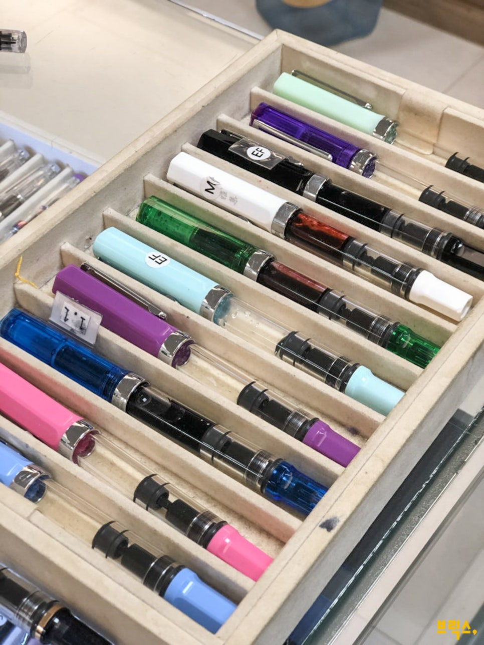 개인적으로 추천하고 싶은 브랜드는 대만 브랜드인 트위스비(TWSBI). 투명한 보디가 시그니처인 트위스비 만년필은 잉크의 색과 양을 직접 눈으로 볼 수 있어서 시각적 만족감이 큰 데다가 가성비까지 뛰어나 입문자들에게 특히 사랑받는 브랜드. 인생 첫 만년필을 찾는 사람에게 손색이 없다. 만년필의 매력을 새롭게 발견하고 싶은 여행자라면 이곳 소품아집에서 트위스비를 시필해보는 경험을 놓치지 말길.
