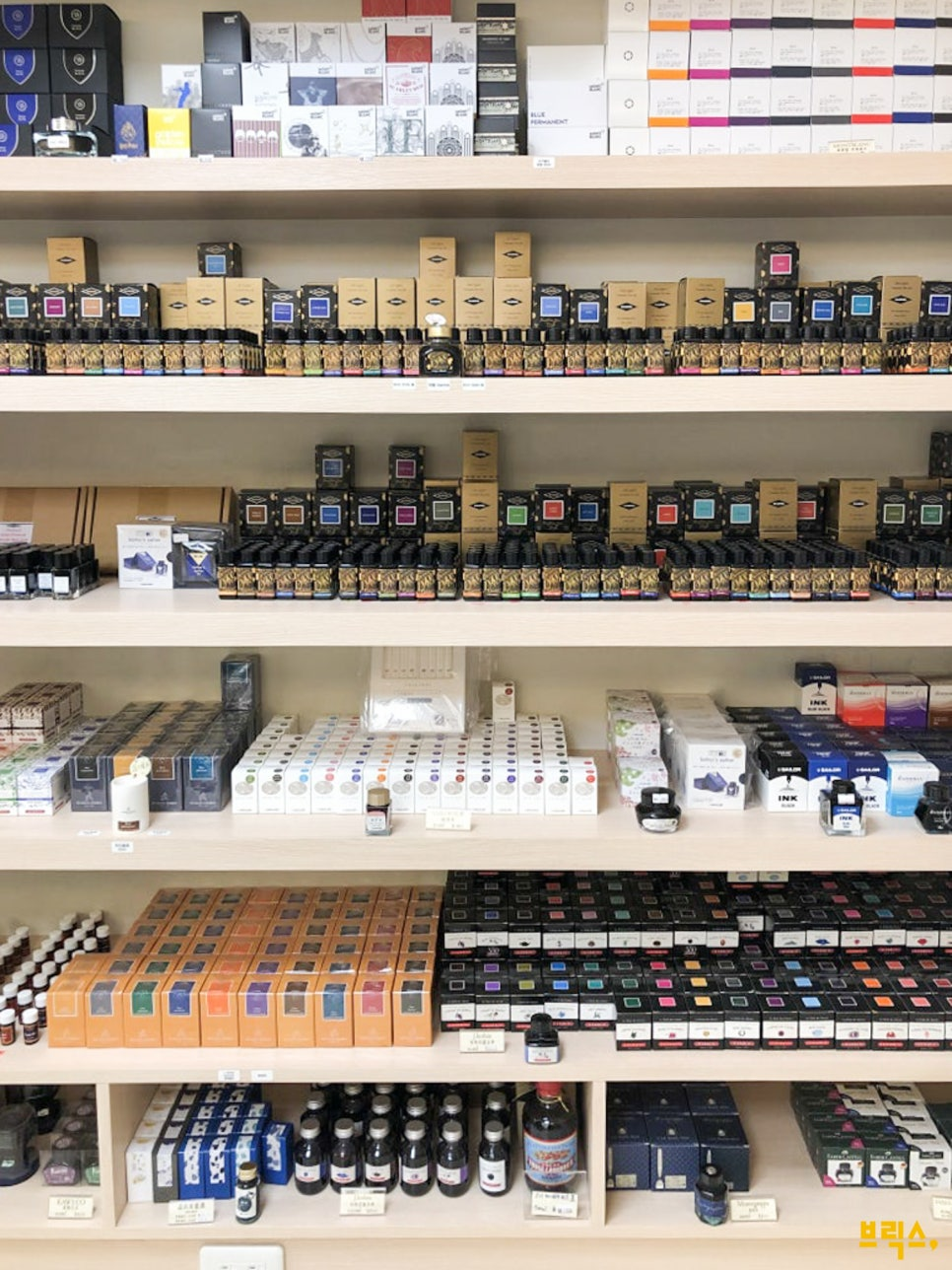 1층에서 만년필을 충분히 구경했다면, 지하로 향해보자. 소품아집의 지하는 마치 또 다른 세계처럼 종이와 잉크로 가득하다. 다양한 크기와 용도로 쓸 수 있는 노트는 물론, 세계 각국의 병잉크들이 가지런히 진열되어 있다. 눈이 돌아갈 정도로 다양한 잉크를 구경하니 한국 브랜드도 있다면서 직원이 소개해 준다. 보면서 마음에 드는 잉크가 있다면 직원에게 잉크 색상을 직접 확인할 수 있는 컬러차트를 보여달라고 하면 된다.