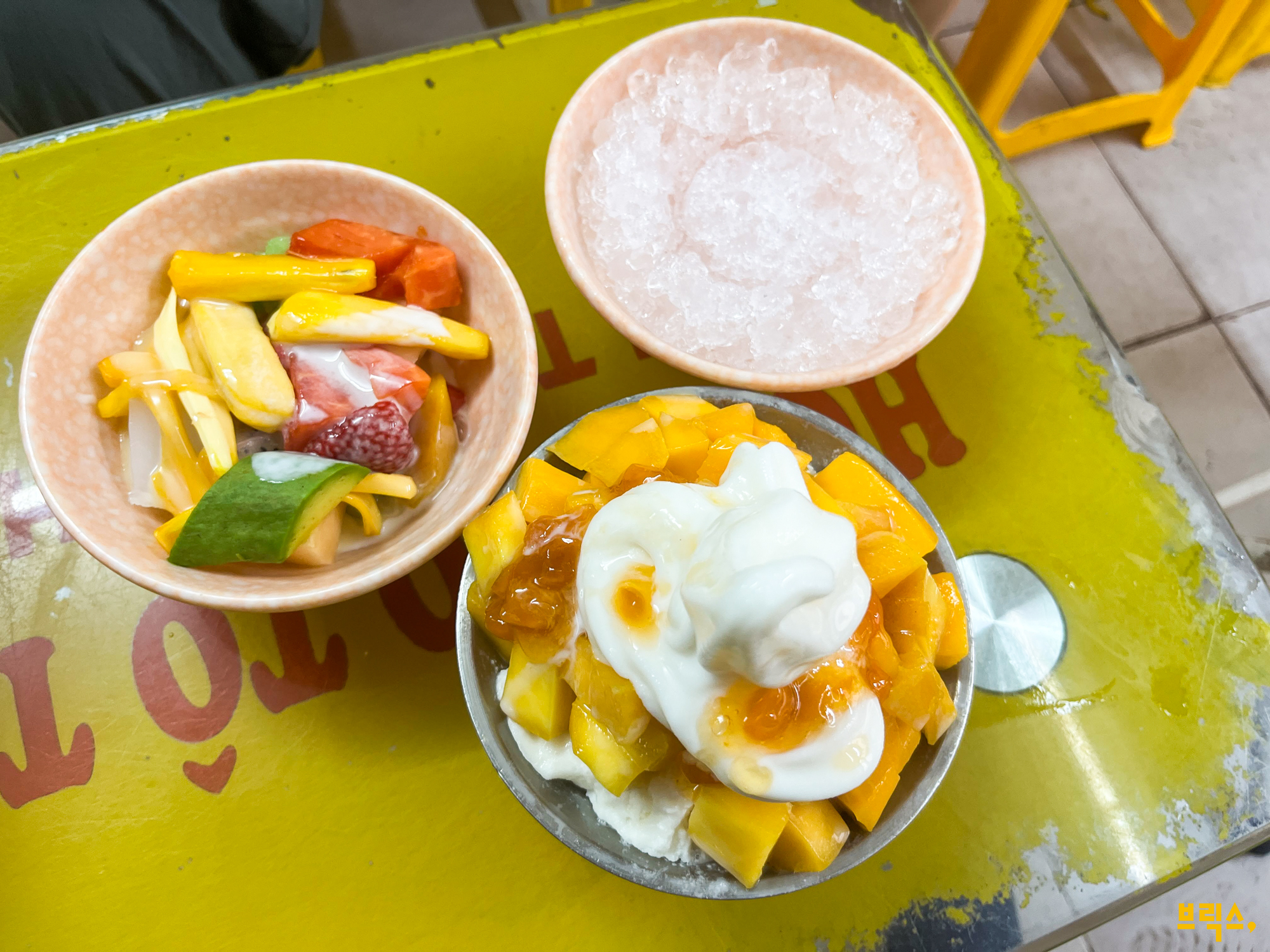 노상에 앉아 빙수를 먹는 맛