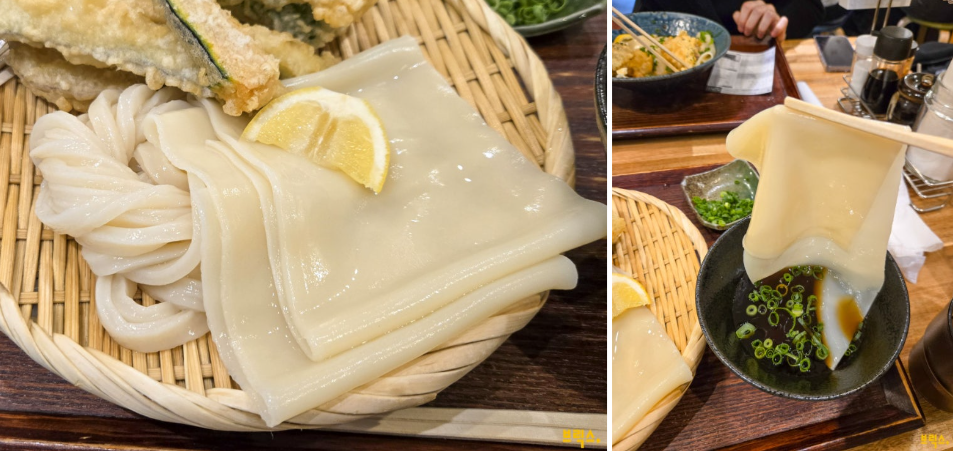 일반 우동면도 면 자체가 너무 맛있다. 탄력이 느껴지는 매끄러운 우동면도 어느 유명점에 뒤지지 않을 만큼 훌륭했다. 역시 진하지만 짜지 않은 츠유와 정말 잘 어우러진다. 면과 함께 나온 레몬을 면 위에 뿌려 먹으면 맛이 배가 된다. 새콤상큼한 레몬즙과 츠유가 만나 시너지 효과를 낸다. 함께 주문한 튀김들도 바삭바삭 맛있다.