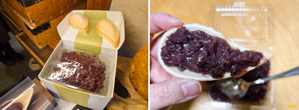 스즈메야의 팥 앙금이 정말 맛있는 건 모나카에서도 확인할 수 있다. 이곳의 모나카는 따로 제공된 모나카 과자에 팥 앙금을 직접 발라서 먹는 방식이다. 촉촉한 앙금을 바로 넣어서 먹으니 과자가 눅눅해지지 않고 바삭바삭해서 아주 맛있다.