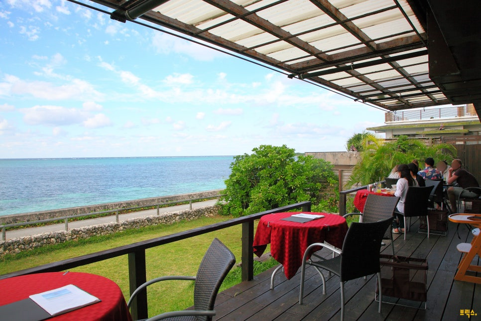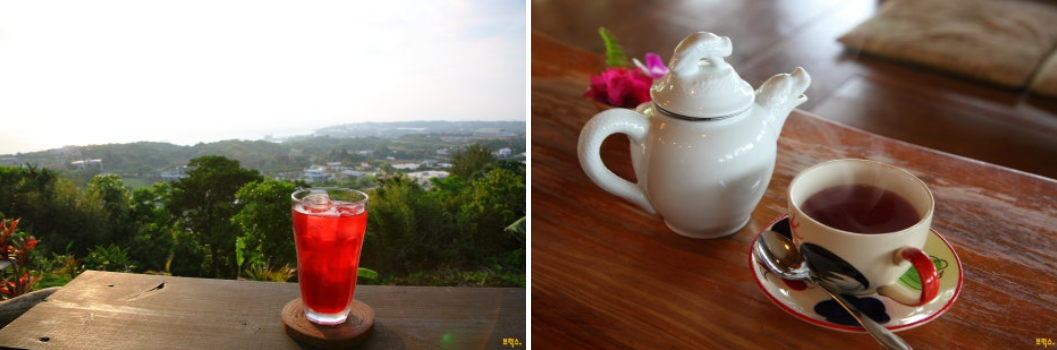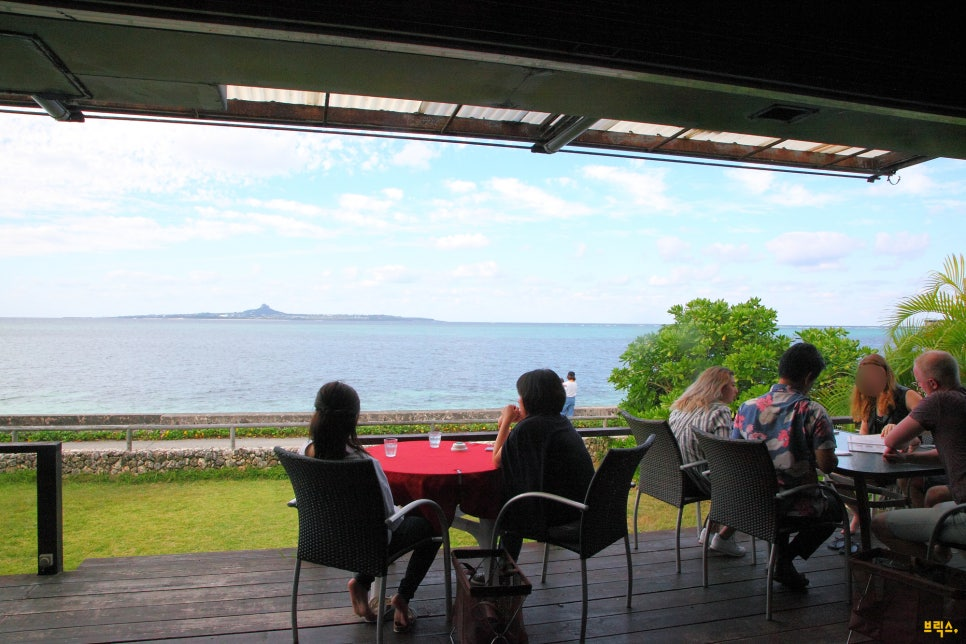 카페 입구가 조그마한 숲의 오래된 민가를 들어가는 듯하여 찾기가 다소 어렵지만, 마침내 들어선 실내에서는 바다를 향한 개방적인 오픈 테라스석이 멋지다. 푸르른 바다와 수평선에 걸쳐 있는 이에지마(伊江島)의 모습과 함께 시간에 따른 하늘과 바다 색의 변화, 비 오는 날에는 수묵화 같은 풍경이 멋진 시간을 만들어준다.