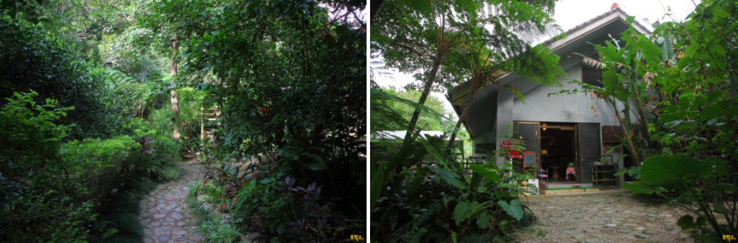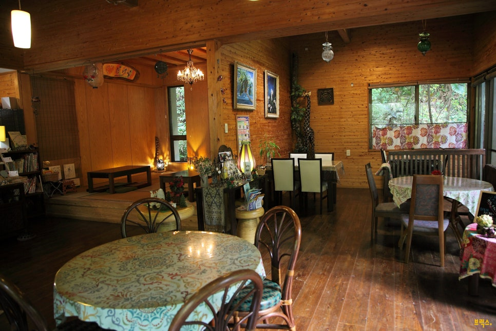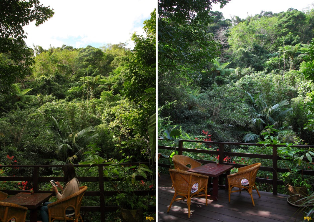 우거진 숲속의 나무, 시원한 바람, 새소리 등이 가득한 테라스에서 느긋한 한때를 보낼 수 있으며, 고야 피자, 애플 피자 등 돌가마에서 구워 낸 독특한 수제 피자가 인기이다. 카페에서 사용하는 히비스커스가 그려진 그릇과 컵은 모두 직접 만든 오리지널 제품이다.