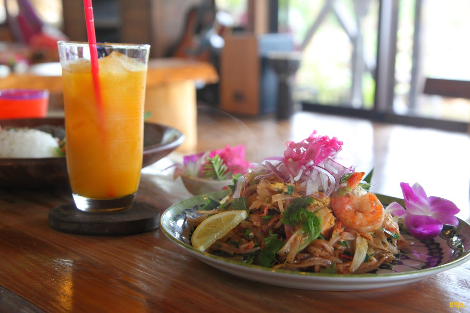 야자수 잎으로 만든 지붕 아래의 테라스 좌석이 가장 인기있는 자리로서 리조트와 같은 남국스러움과 함께 해먹에 누워 오후의 낮잠이라도 청하면 여행의 피로를 말끔하게 해소할 수 있을 것이다.