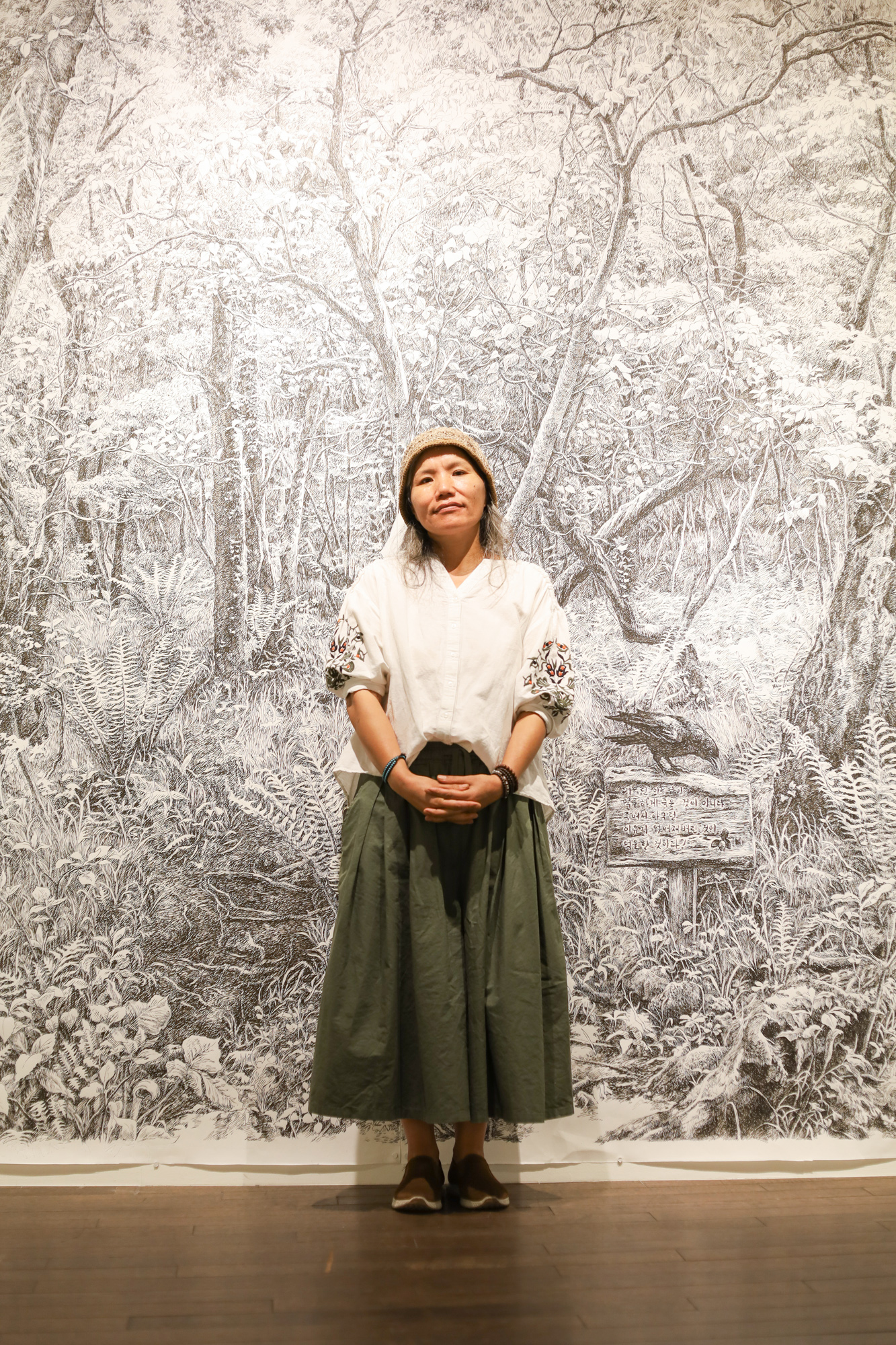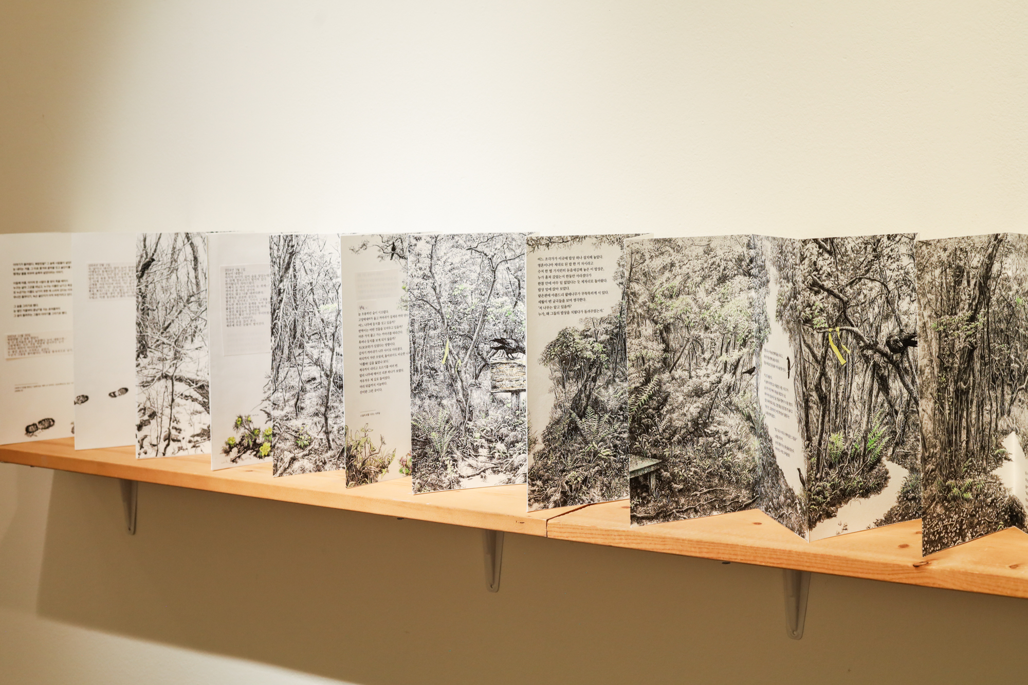 나무 하나, 풀 하나가 선만으로도 되잖아요. 나무도 생명이고 풀도 다 생명이고, 돌도 생명이고, 그 생명이 놓여 있는 장소, 과거, 현재라는 시간이 다 연결된 시점이 있다고 생각하면 선 하나를 허투루 그릴 수가 없어요. 꽃을 예쁘게 그리는 게 아니라 특정 장소에 꽃을 놓고 있다고 생각하면 선 하나를 긋는 느낌이 달라져요. 그래서 제가 선 긋기를 ‘제의’라고 표현했는데, 그림으로써 뭘 남긴다는 뜻이에요. 선 자체가 제의일 수 있지만, 지금 이 장소든 4.3의 장소든 제가 선으로 남겨 놓는 작업 자체가 저에게 제의예요.