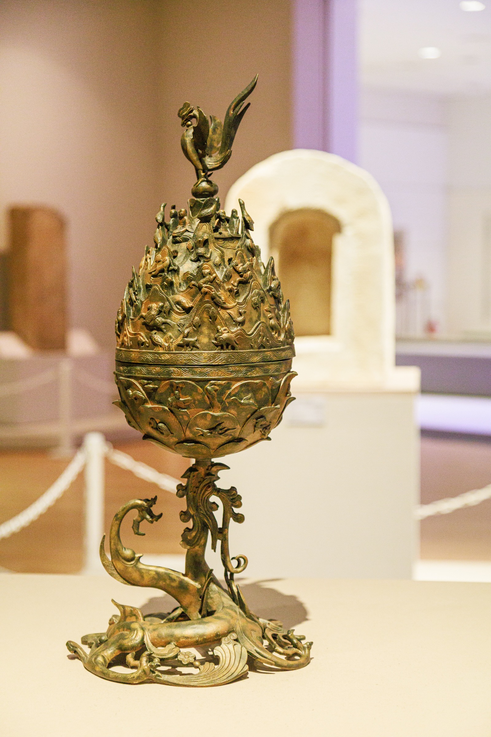 백제를 수식하는 형용사는 ‘세련되다’, ‘우아하다’ 같은 말들인데요, 의복에 있어서도 장신구에 있어서도 그들의 미감을 잘 드러냈습니다. 그 결정체가 복제품으로 전시된 금동왕관과 금동신발, 그리고 금동대향로입니다. 금관 하면 신라가 떠오르지요? 동시대로 보면 백제의 세공 기술이 더 뛰어났다고 합니다. 동판에 용과 같은 상상의 동물을 작게 새겨 넣은 기술은 지금도 감탄이 나올 정도입니다. 특히 국보로도 지정된 백제금동대향로는 언젠가 국립부여박물관에서 실물을 꼭 만나보시면 좋겠습니다.