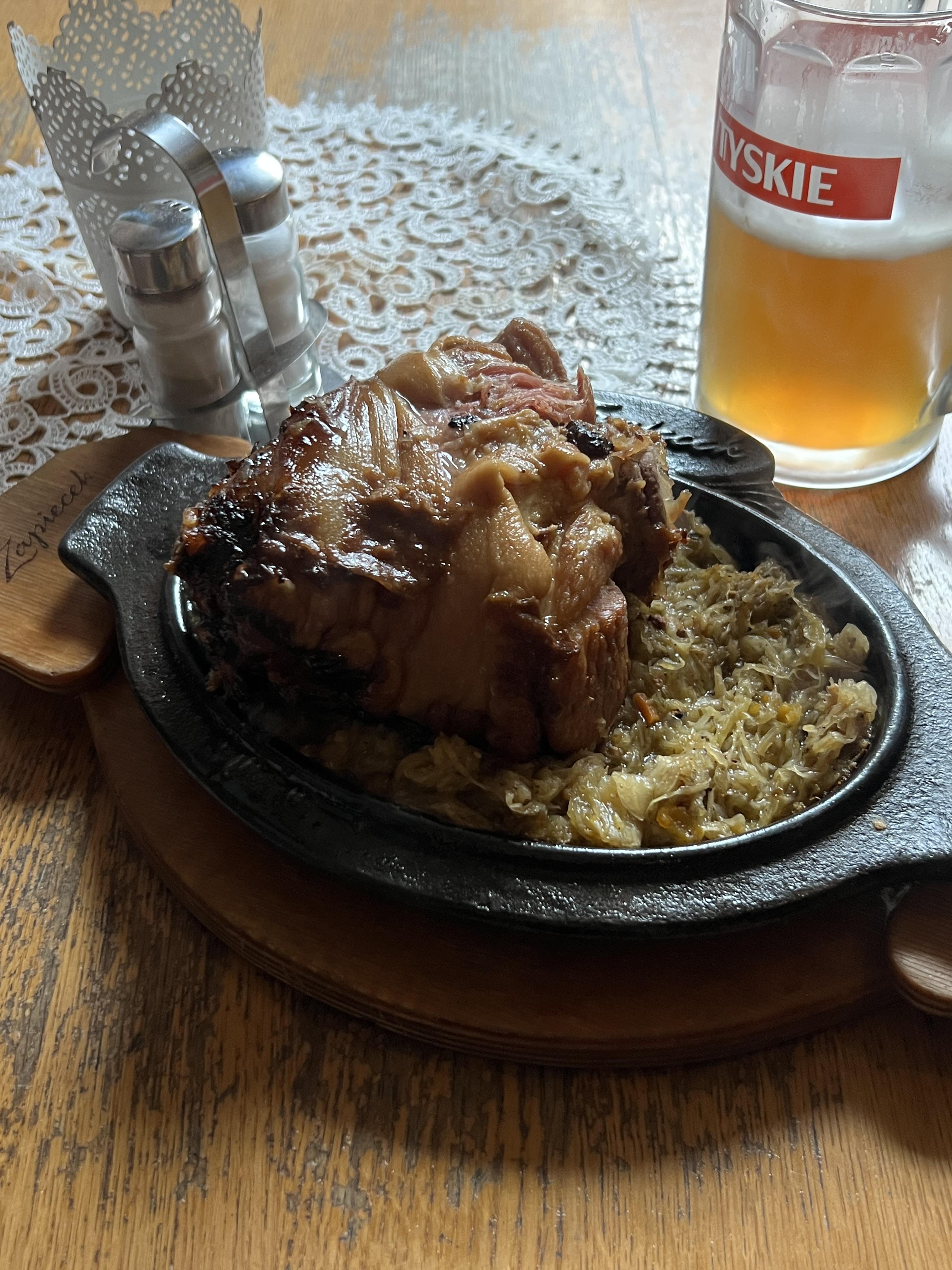 미리 알아 두었던 폴란드식 돼지 족발 골롱카golonka를 파는 식당으로 가서 저녁을 먹었다. 지글지글 돌 판에 볶은 양배추와 함께 나온 골롱카에 맥주 한 잔을 곁들였다. 야들야들한 족발 식감도 좋았지만 무엇보다 볶은 양배추가 꼭 볶은 김치와 같은 맛을 내 안 물리고 잘 먹었다. 이래서 배추가 없는 곳에선 양배추로 김치를 담나 보다. 이름 모를 식당에 들어가 어물쩍 또 피에로기를 먹을 뻔했는데 잘됐다 뭐.