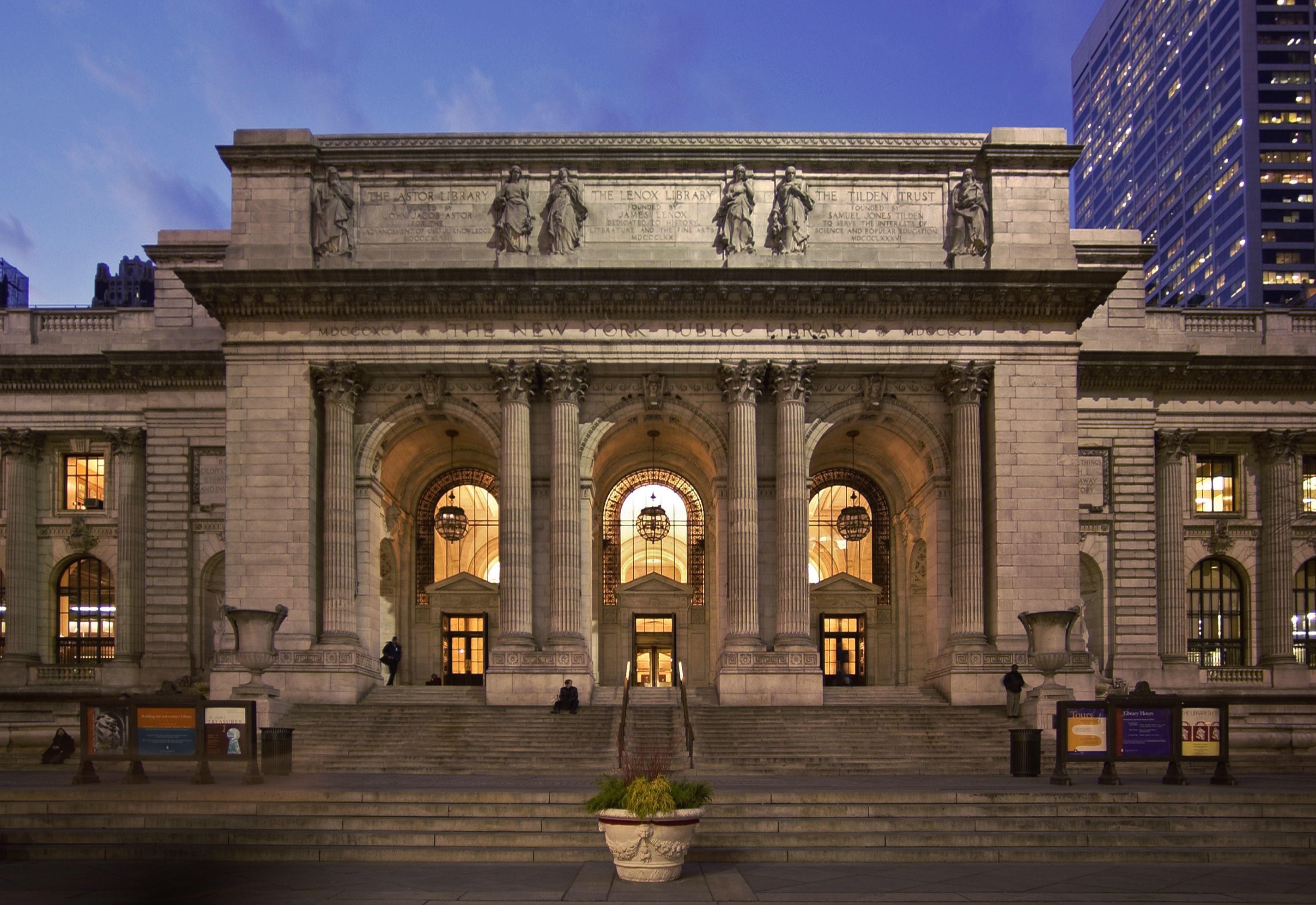 1911년 5월 24일, 봄날 아침의 맨해튼, 뉴욕시 전체가 설렘으로 가득 찰 만큼 5만 명이 넘는 사람들이 도서관에 줄을 섰다. 그 전날 도서관 개관식엔 당시 미국 대통령 테프트(William Howard Taft, 1857~1930)등 주요 인사들이 참석하였는데, 이때도 약 15,000명이 모였다. 십수 년간의 계획과 기금 모금, 건축 끝에, 마침내 5번가의 뉴욕공립도서관 본관이 문을 열었고, 대리석으로 빛나는 웅장한 홀과 도도한 계단, 높은 천장이 있는 열람실이 시민들을 맞이했다.