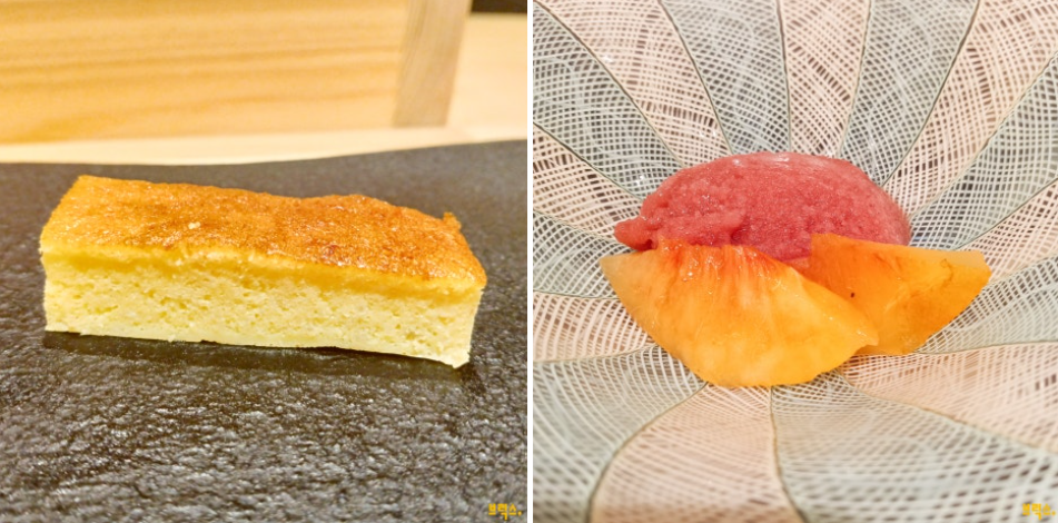 사실 스시 유우키의 매력은 스시 자체의 퀄리티 말고도 또 있습니다. 셰프께서 초밥이 한 피스씩 나올 때마다 츠케다이(스시를 올리는 상)을 닦아 주신다는 점이에요. 마치 와인 시음회에서 와인마다 잔을 바꿔 마시듯 앞선 초밥과 맛이 섞이지 않고, 위생적이며, 무엇보다 사진이 예쁘게 나온다는 장점이 있습니다. 미각은 물론 시각적으로도 기대치가 있는 손님들의 니즈를 잘 충족해 주신다고 할 수 있겠습니다.