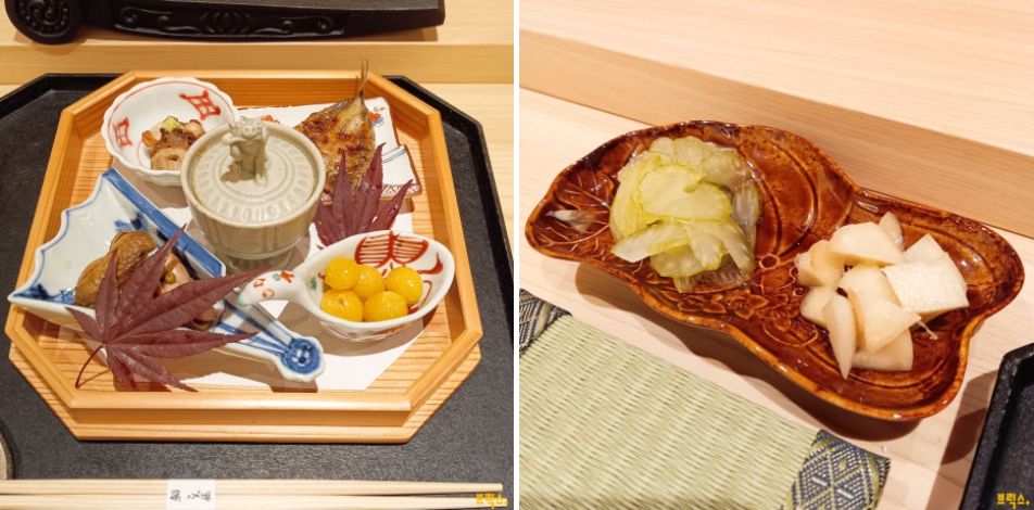 요리는 식재료 본연의 맛을 살리면서 동시에 제철을 표현하는, 딱 일식 느낌을 줍니다. 혀와 코, 그리고 눈이 만족합니다. 셰프님이 그릇에도 조예가 깊으셔서 더욱 예술적인 재미가 있습니다.